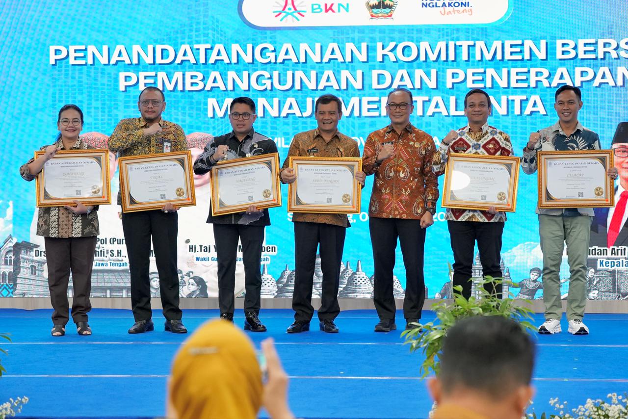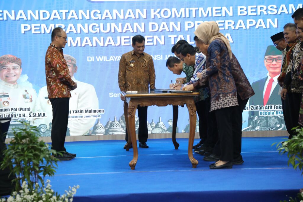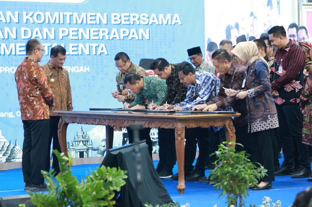 SEMARANG – Dalam upaya memperkuat penerapan sistem merit aparatur sipil negara (ASN) yang profesional, efektif, dan efisien, Pemerintah Provinsi Jawa Tengah bersama 35 pemerintah kabupaten/kota menyatakan komitmennya untuk mengimplementasikan manajemen talenta. Kebijakan ini diarahkan agar ASN mampu mendukung realisasi visi dan misi pimpinan daerah, sekaligus meningkatkan kesejahteraan masyarakat.