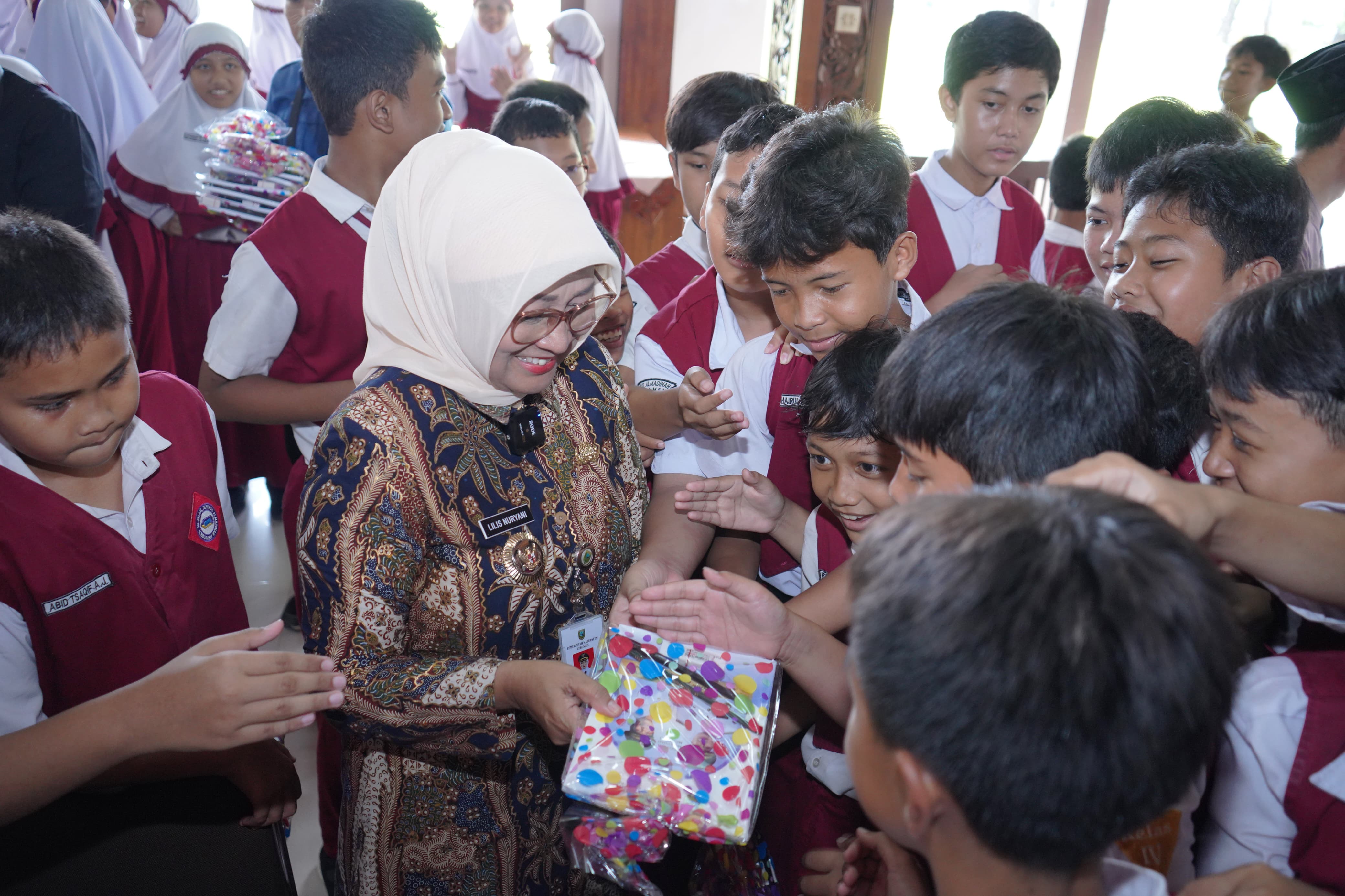 Kegiatan ini diakhiri dengan penyerahan cendera mata dari pihak sekolah kepada Bupati, serta pembagian alat tulis kepada seluruh siswa sebagai bentuk apresiasi atas semangat belajar mereka.