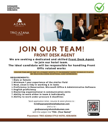 Lowongan Kerja: Front Desk Agent – Trio Azana Style Hotel Kebumen